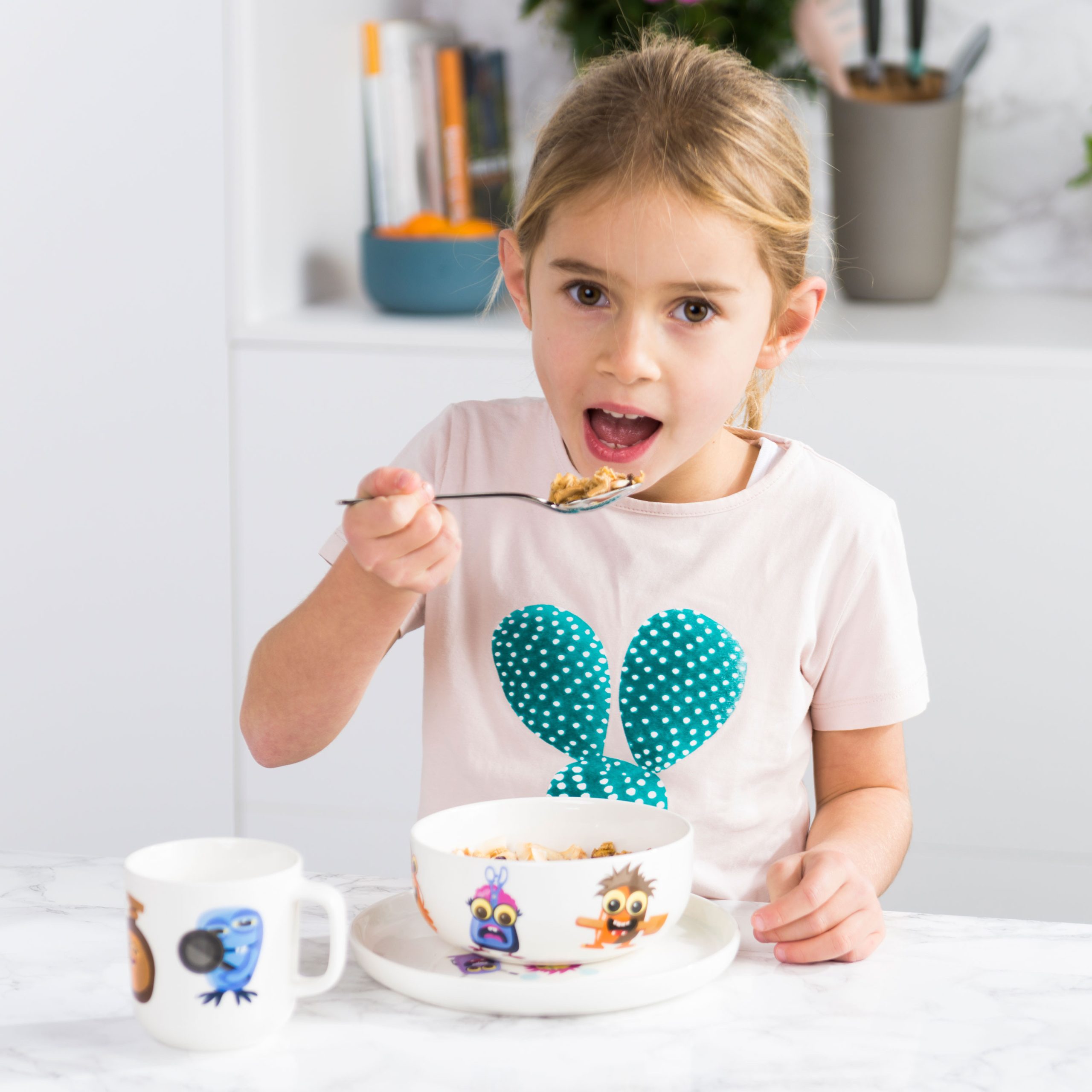 Этот фарфоровый набор из трёх предметов с игривым дизайном MonsterChefz